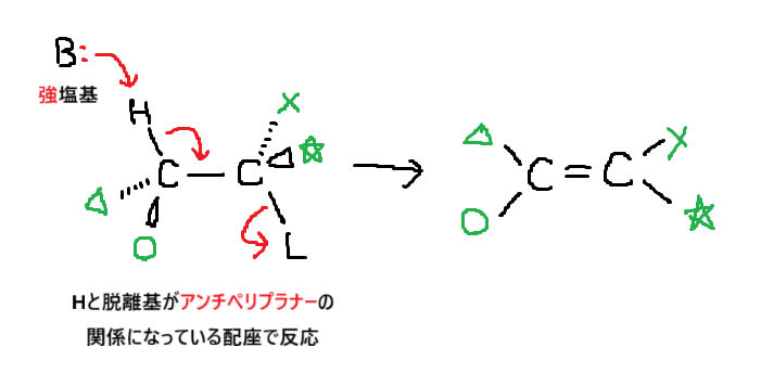 2 Hと脱離基がアンチペリプラナーの関係にある