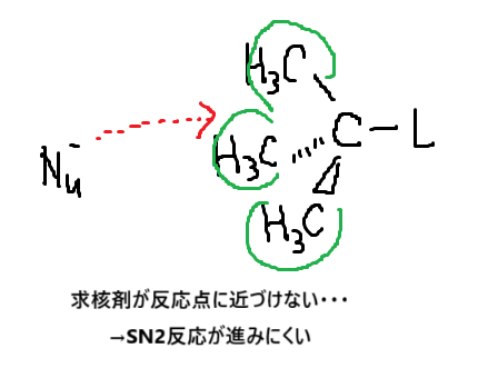 よって、SN2反応の進みやすさは「メチル>1級>2級>3級」です!