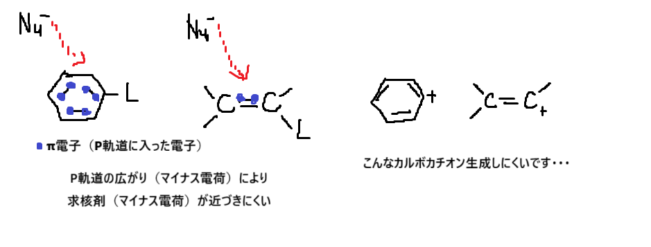 よって、SN1もSN2も起こりにくいです🤓結果だけ覚えてもOK!