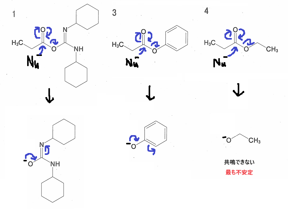 残りは全てエステルです🤔どう考えるかというと、反応したあとの脱離基の安定性です。