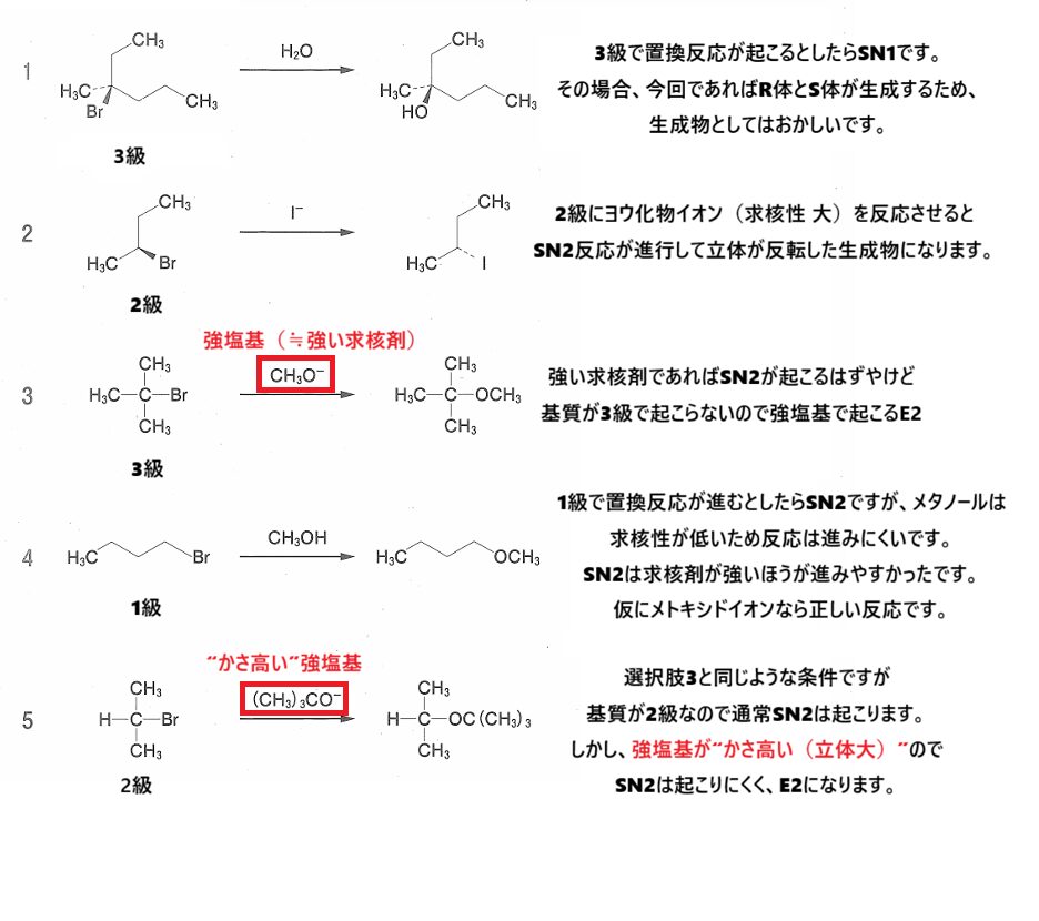 SN反応とE反応が混ざったものは、過去に出題されたことがないタイプですね🤨