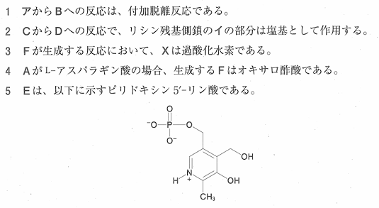こちらも近年の国家試験ではよく出題されている、生体成分関連の反応問題です。見た目は難しそうですが、問われている反応自体は基本的であることがほとんどです。今回の問題も、聞かれている反応は頻出のものです🤓